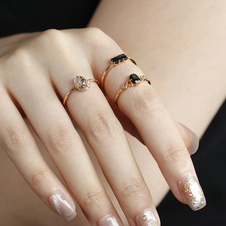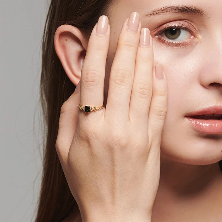 Emotional Factory 925 Sterling Silver 14K Gold Plated Gemstones Vintage Floral Pattern Green Aventurine Peridot Ring