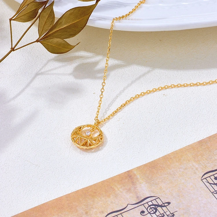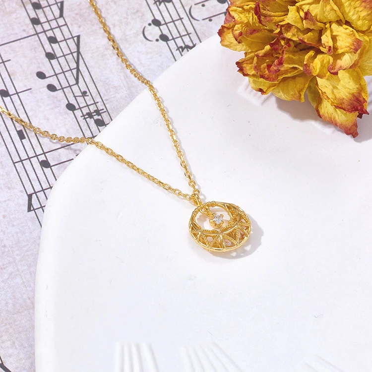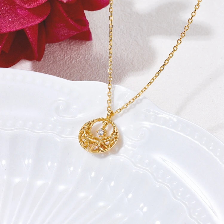 Emotional Factory 925 Sterling Silver 14K Gold Plated Hollow  Moon Stranded Cage Necklace Emotional Factory 925 Sterling Silver 14K Gold Plated Hollow  Moon Stranded Cage Necklace