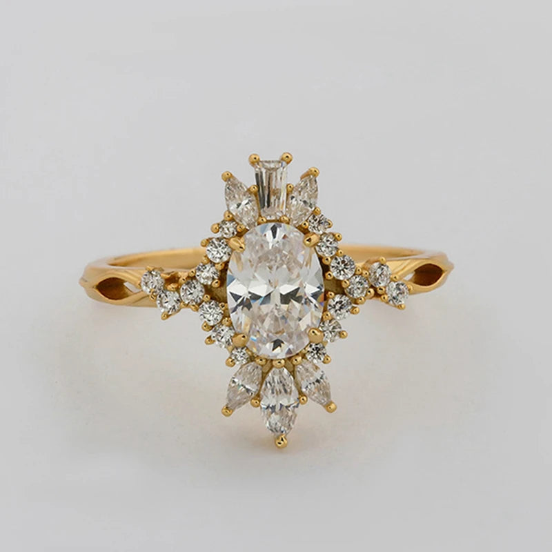 Emotional Factory 925 Sterling Silver 14K Gold Plated Irregular Rhombic Cz Zircon Noble Design Geometrical Ring