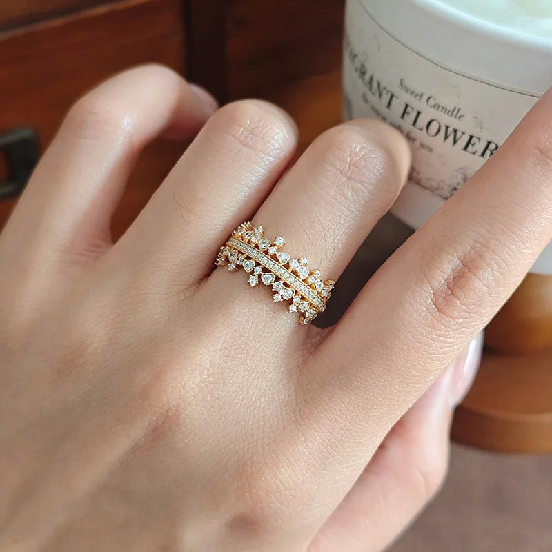 Emotional Factory 925 Sterling Silver 14K Gold Plated Lace Sparkling Micro-Paved Zircon Ring