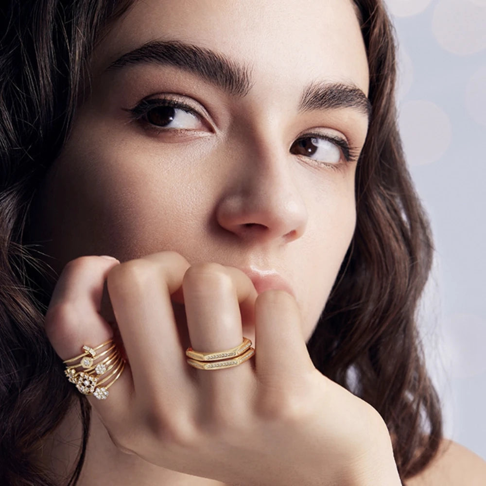 Emotional Factory 925 Sterling Silver 14K Gold Plated Natural Stone Gemstone Zircon Hollow Artistic Retro Diamond Shaped Ring