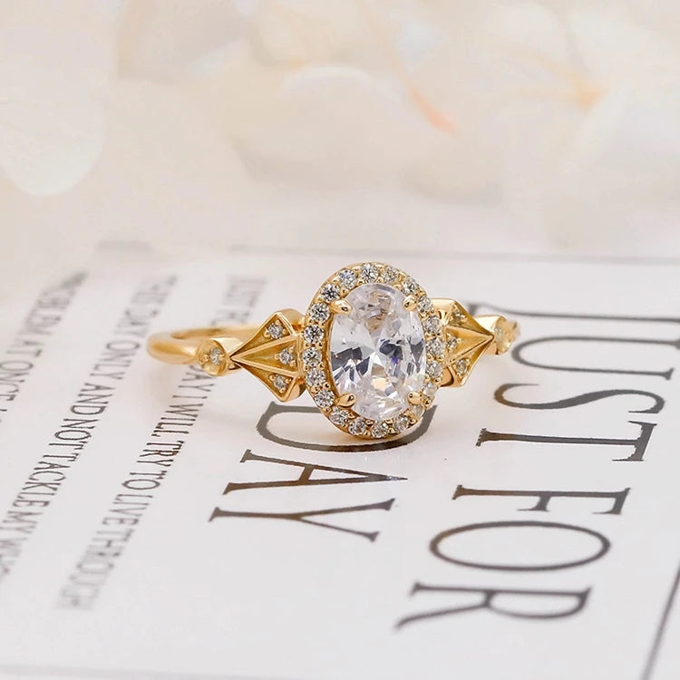Emotional Factory 925 Sterling Silver 14K Gold Plated Retro Vintage Cz Zircon Ring Geometric Rings