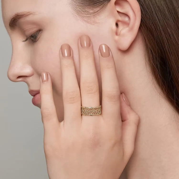 Emotional Factory 925 Sterling Silver 14K Gold Plated Retro Vintage Medieval Pattern Irregular Hollow Ring