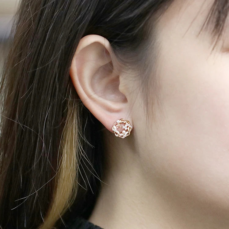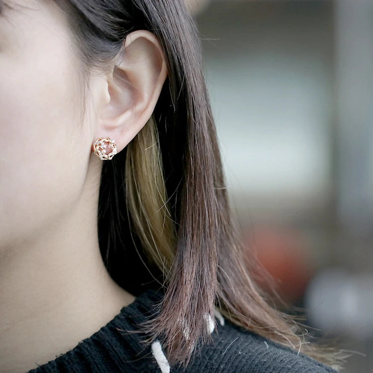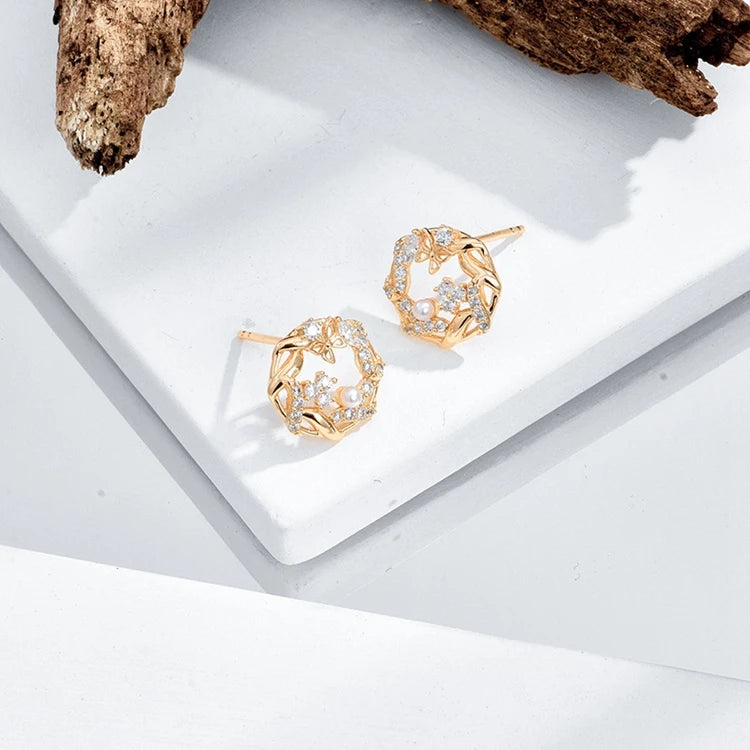 Emotional Factory 925 Sterling Silver 14K Gold Plated Round Hollow Butterfly Pearl Earrings