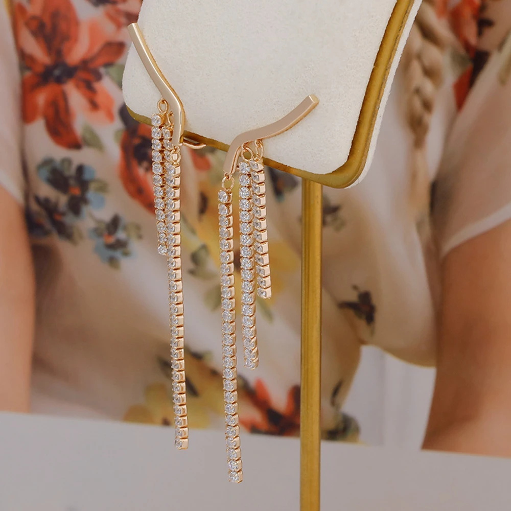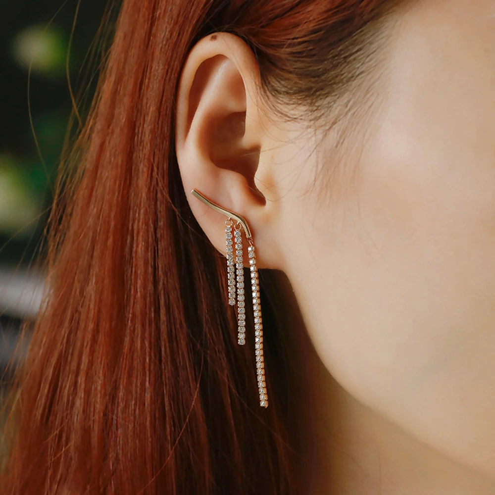 Emotional Factory 925 Sterling Silver 14K Gold Plated White Cz Zircon Tassels Tennis Chain Ear Clips Stud Pendant Earrings Emotional Factory 925 Sterling Silver 14K Gold Plated White Cz Zircon Tassels Tennis Chain Ear Clips Stud Pendant Earrings