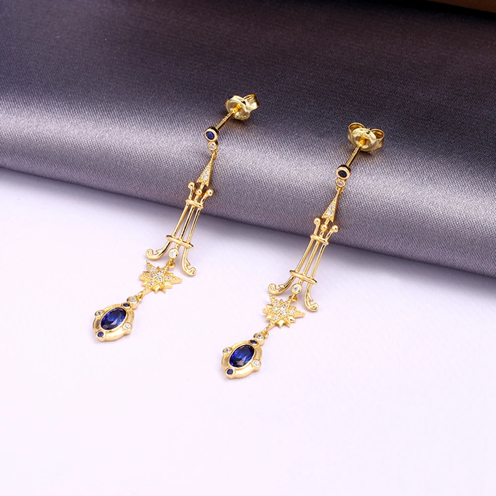 Emotional Factory 925 Sterling Silver Gem Stone Gemstone Vintage Style Palace Starlight Astral Star Blue Zirconium Earrings