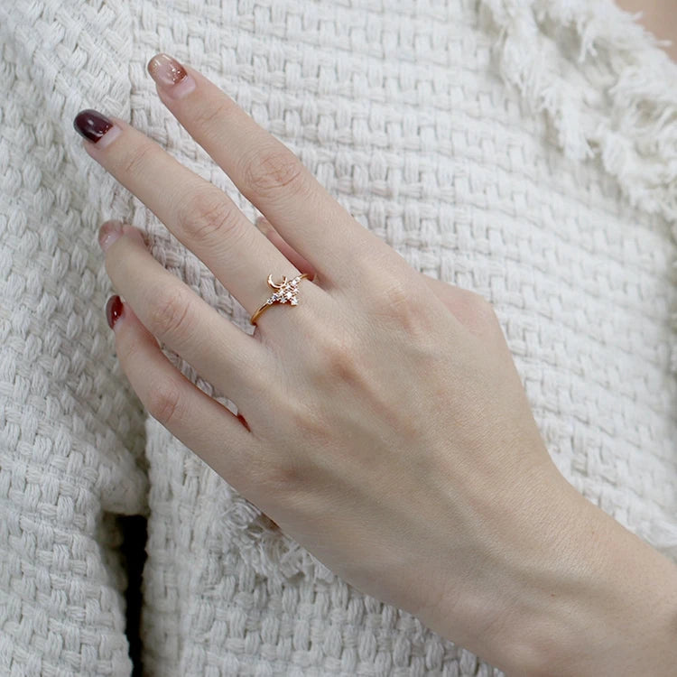 Emotional Factory Anel Prata 925 925 Sterling Silver 14K Gold Plated Personality Mini Zircon Moon Ring Bijoux for Women