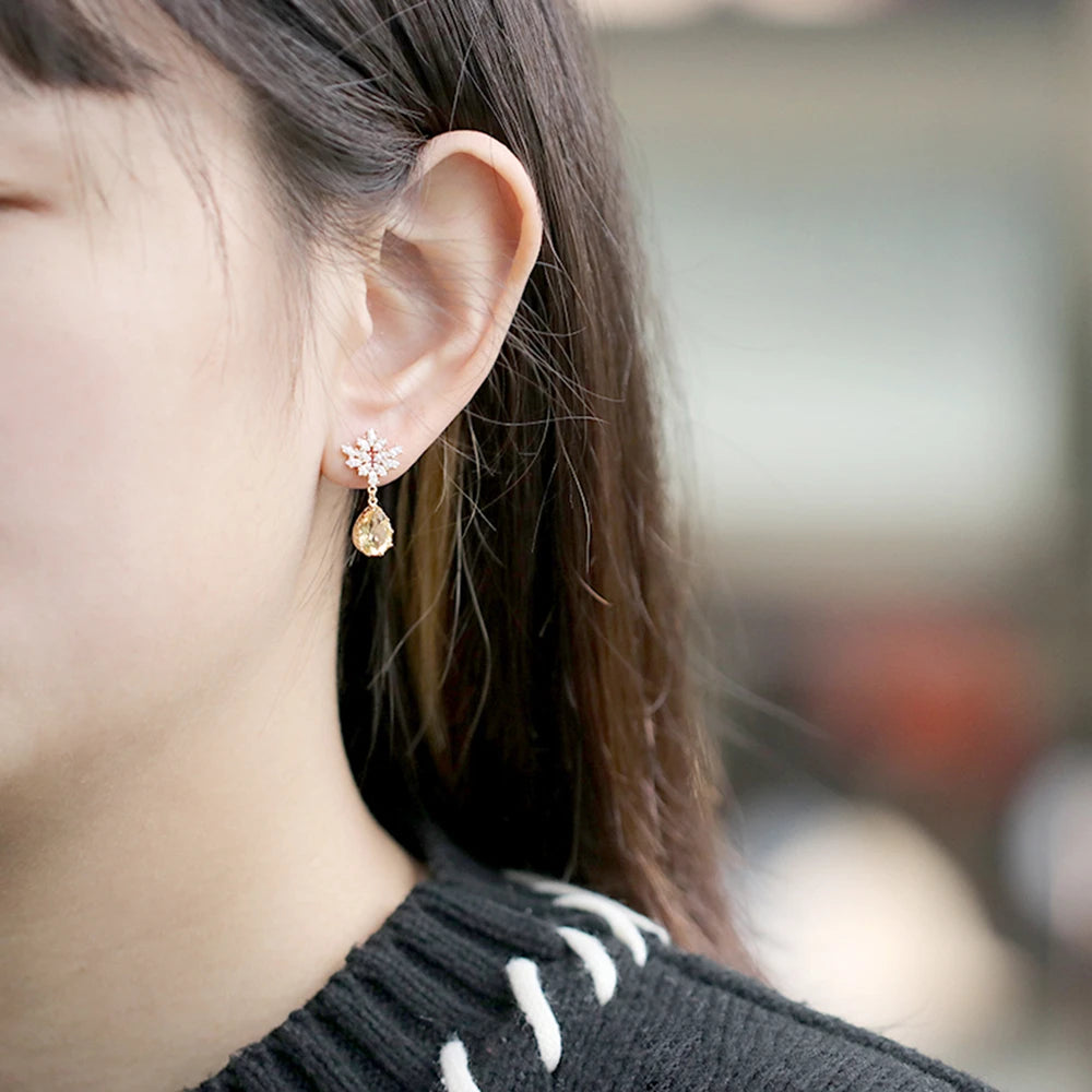 Emotional Factory Jewelry 925 Sterling Silver 14K Gold Plated Gemstone Series Snowflake Flower Natural Citrine Earrings