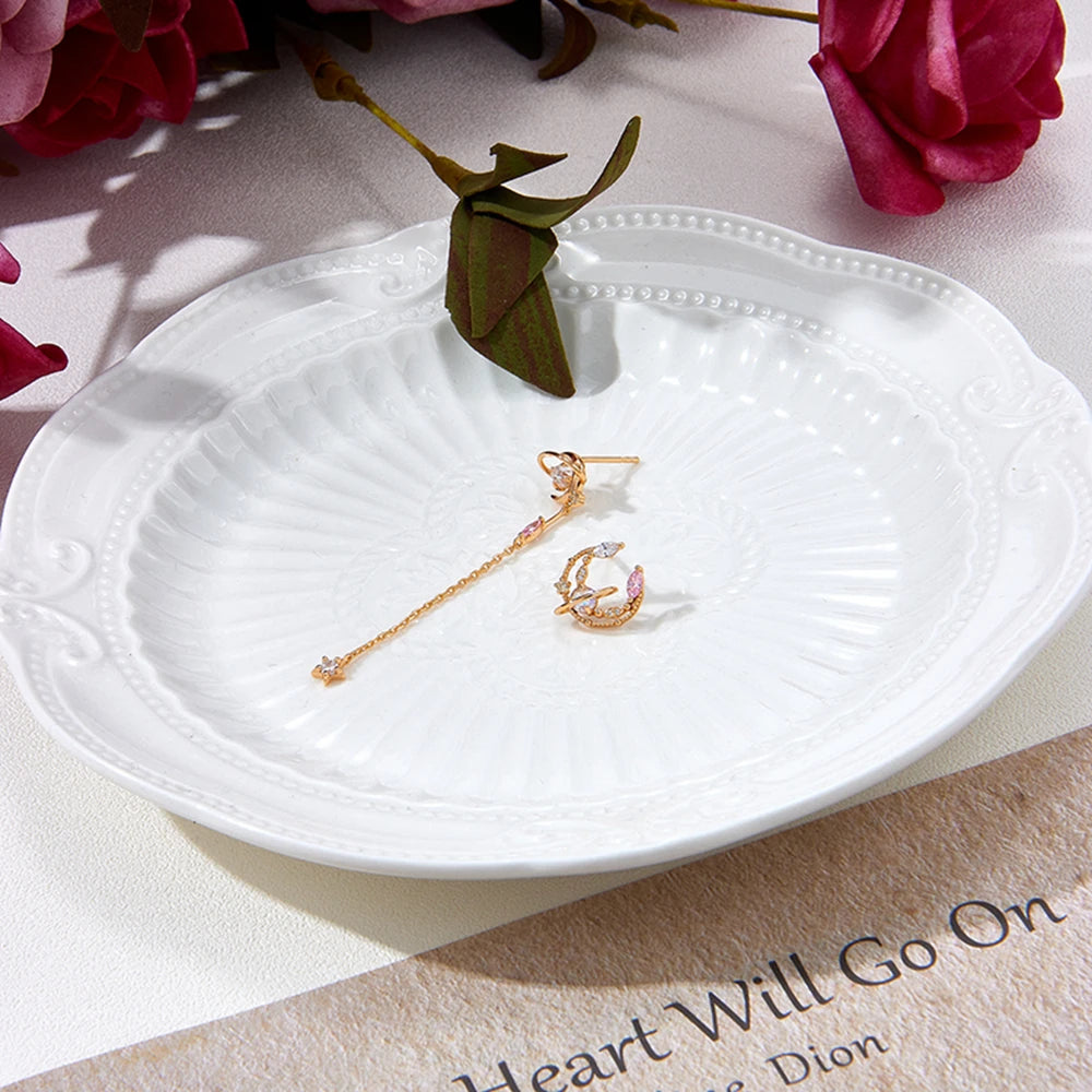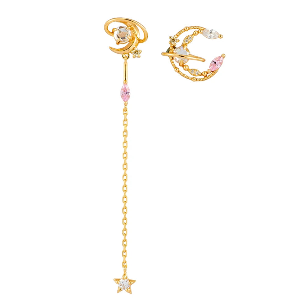 Emotional Factory Jewelry New 925 Sterling Silver 14K Gold Plated Pink Zircon Light Yellow Long Moon Star Earrings