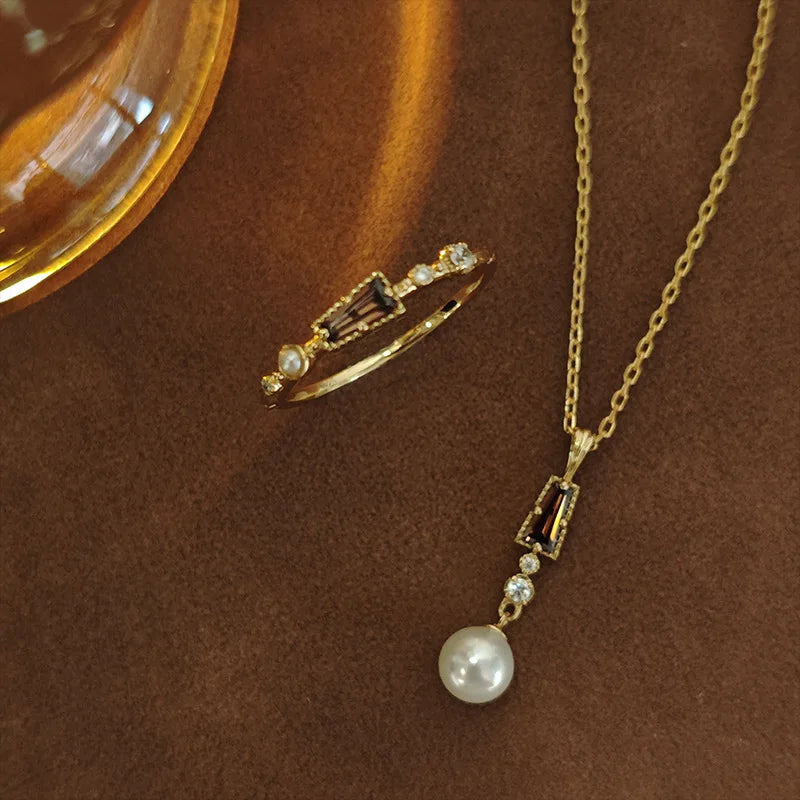 Factory 925 Sterling Silver 14K Gold Plated Gemstone Cz Geometric Trapezoid Natural Freshwater Pearls Brown Zircon Necklace