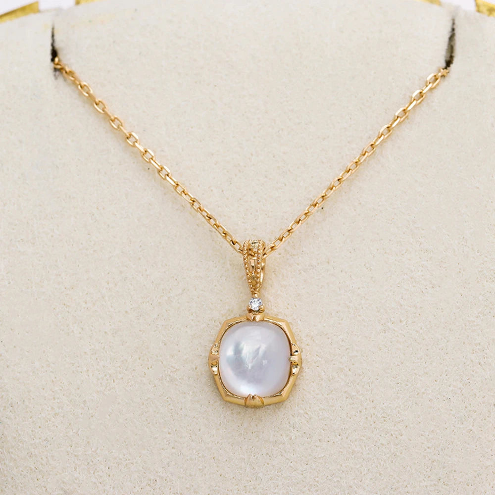 Factory Hot 925 Sterling Silver 14K Gold Plated Gem Stone Gemstone Elegant Geometric Square Rock Crystal Seashell Necklace