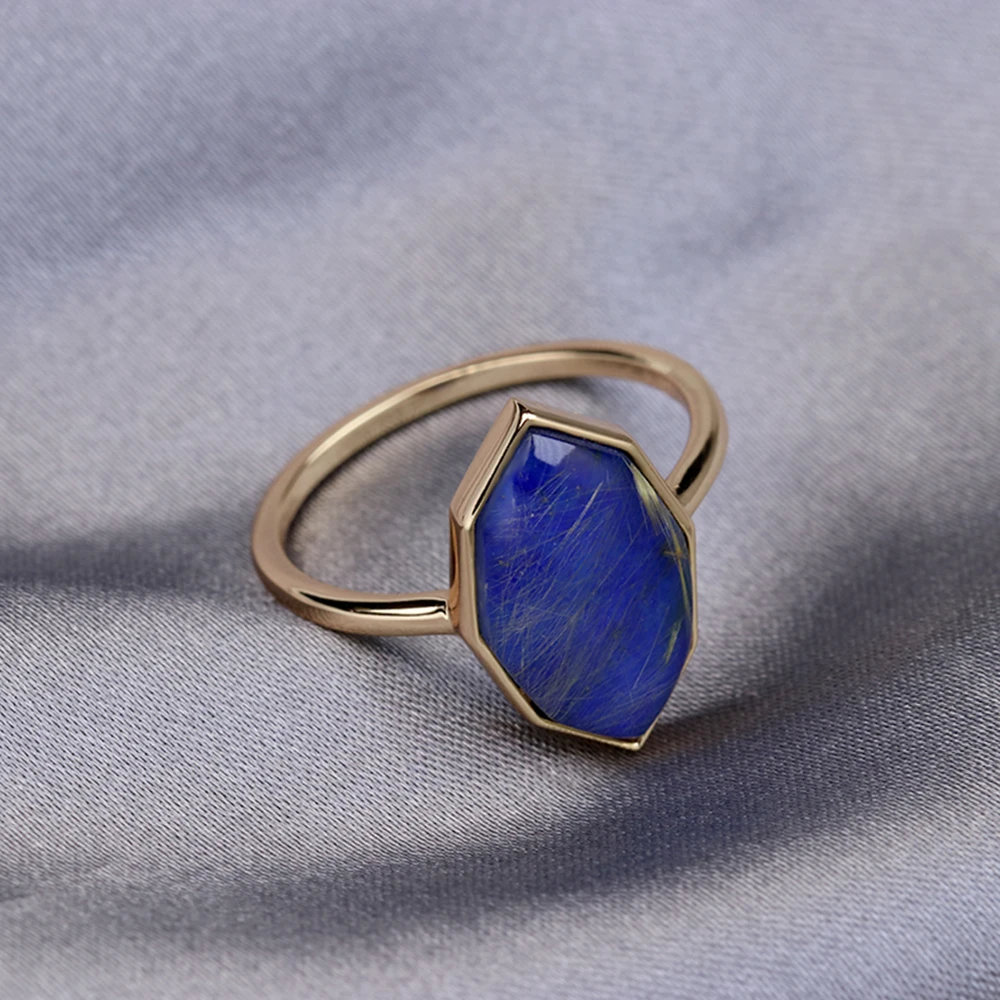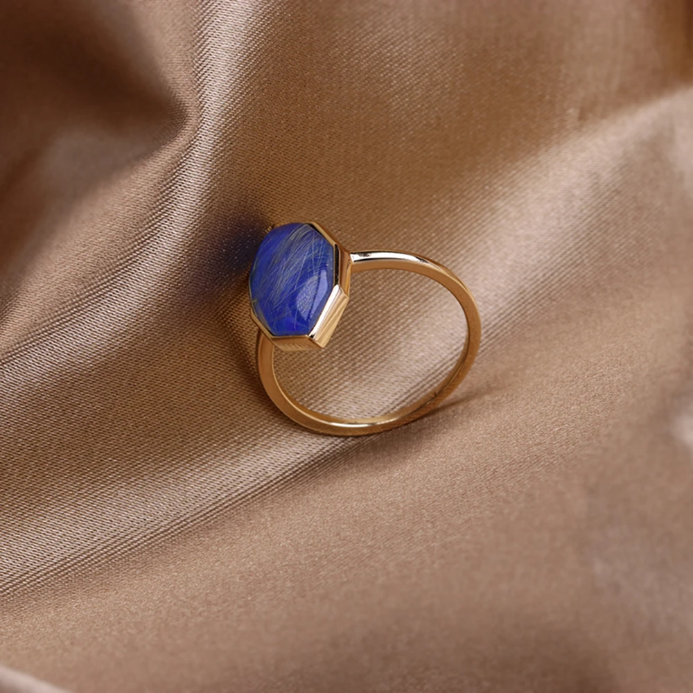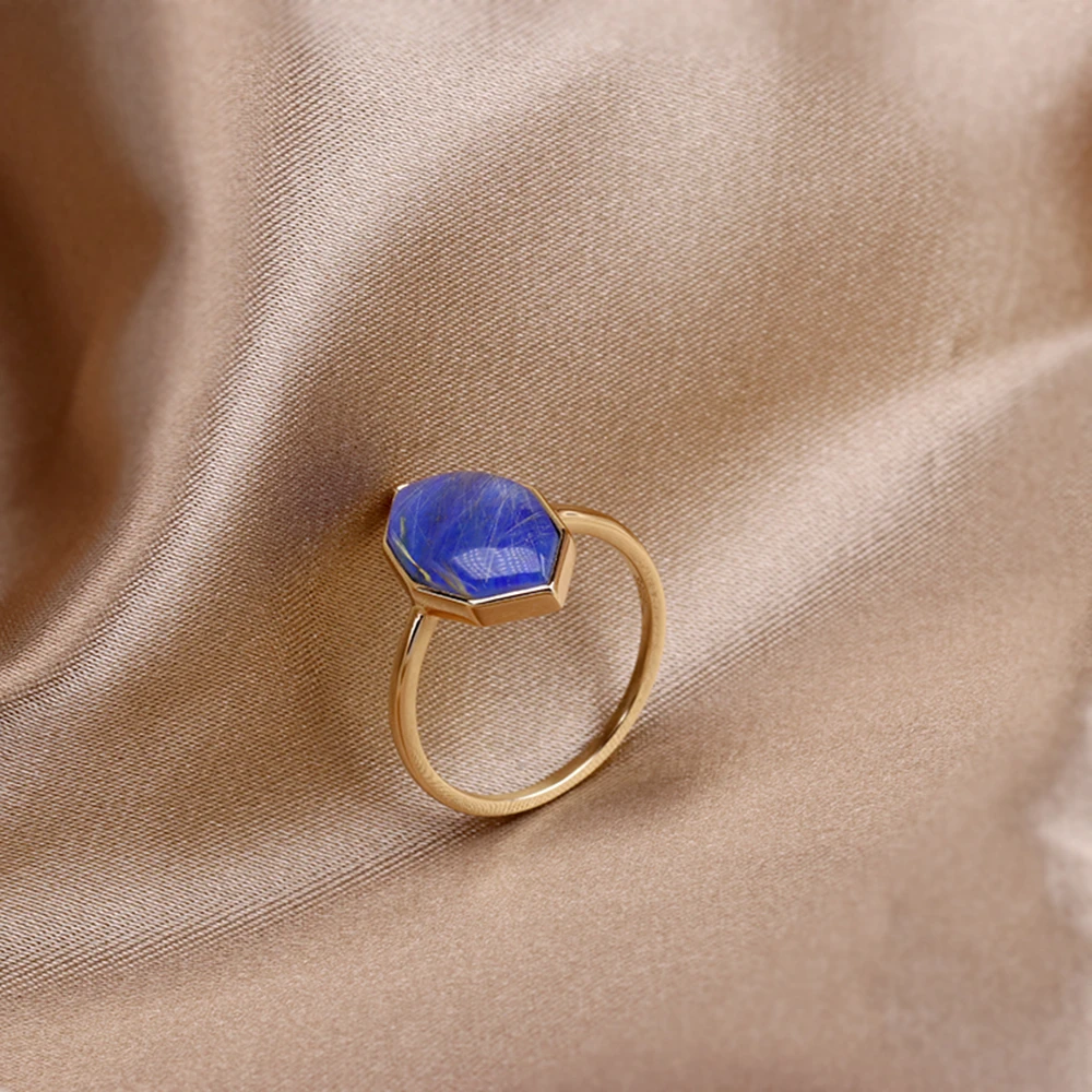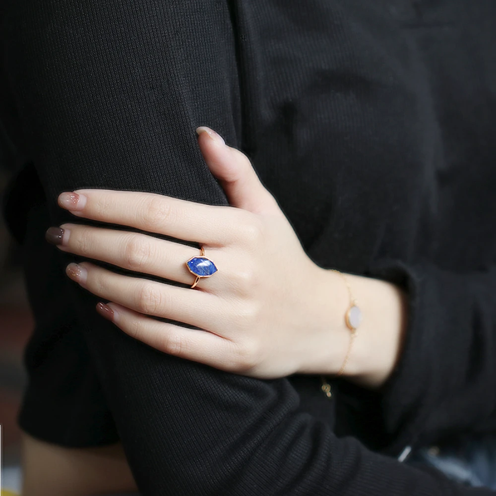 Factory Jewelry 925 Sterling Silver 14K Gold Plated Gemstone Series Blonde Crystal Lapis Lazuli Big Stone Ring Factory Jewelry 925 Sterling Silver 14K Gold Plated Gemstone Series Blonde Crystal Lapis Lazuli Big Stone Ring