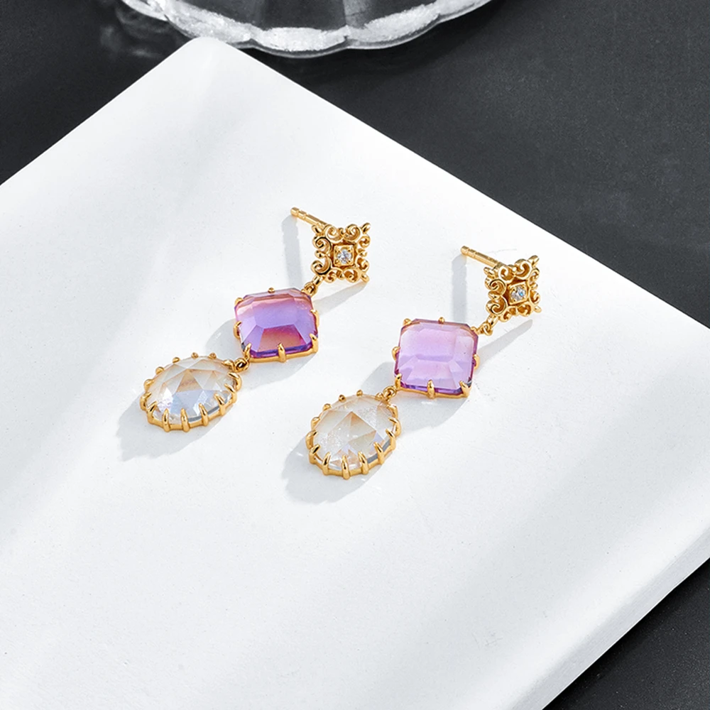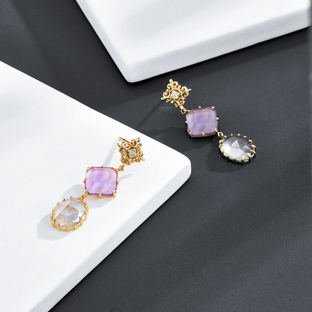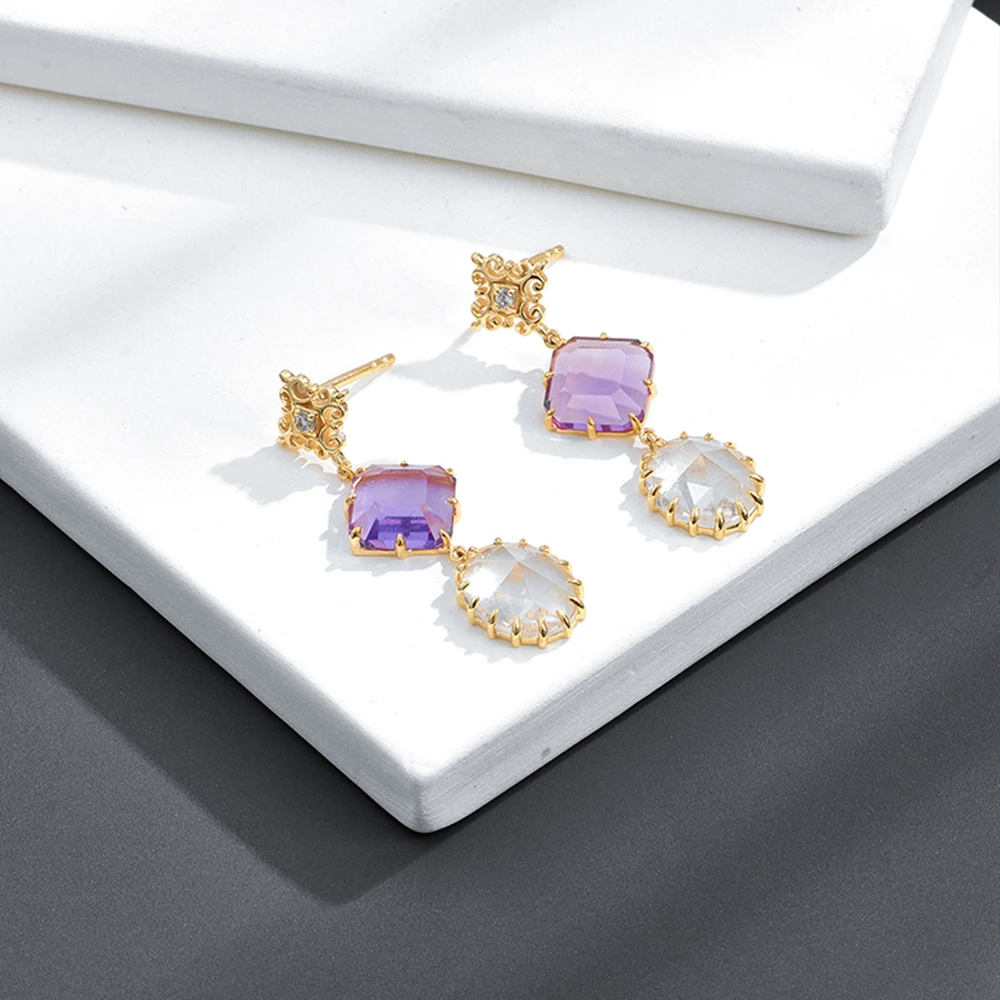 Factory Jewelry 925 Sterling Silver 14K Gold Plated Gemstone Series Crystal Brazilian Amethyst White Topaz Long Earrings Factory Jewelry 925 Sterling Silver 14K Gold Plated Gemstone Series Crystal Brazilian Amethyst White Topaz Long Earrings