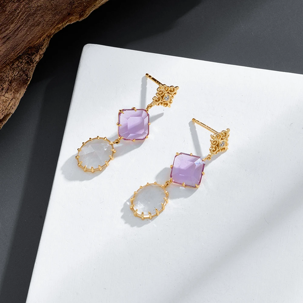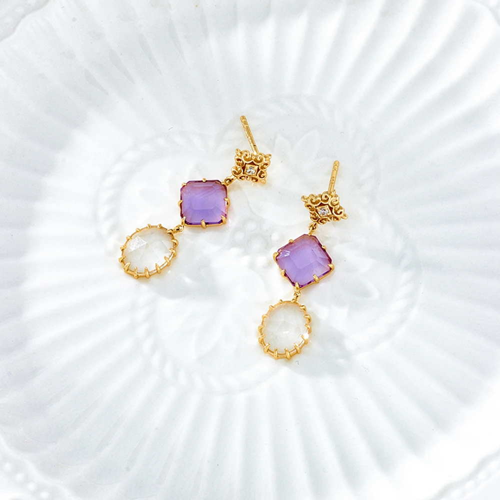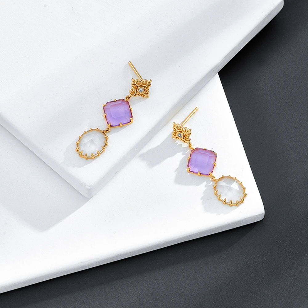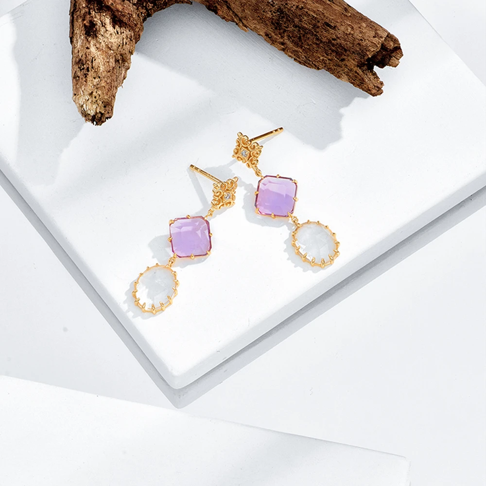 Factory Jewelry 925 Sterling Silver 14K Gold Plated Gemstone Series Crystal Brazilian Amethyst White Topaz Long Earrings Factory Jewelry 925 Sterling Silver 14K Gold Plated Gemstone Series Crystal Brazilian Amethyst White Topaz Long Earrings