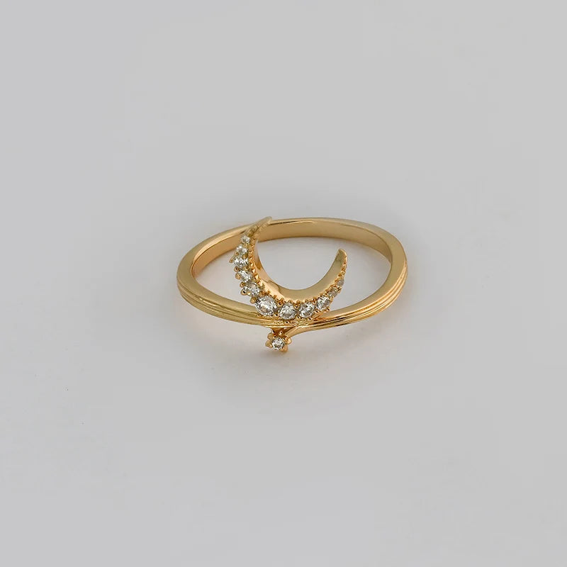Fashionable Design Moon Shape Micropaved Zirconia Ring S925 Sterling Silver Plated With 14K Gold