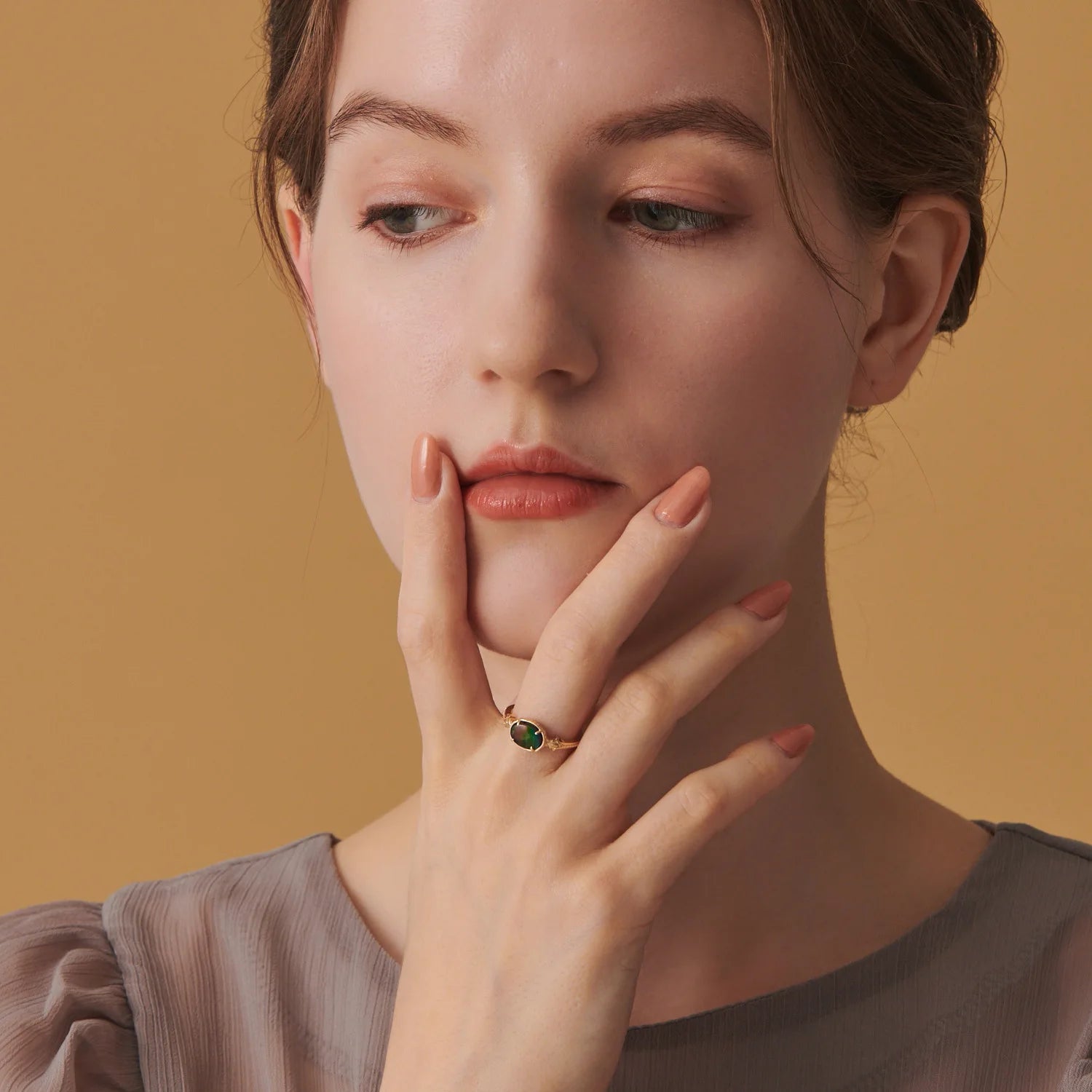 Japanese Minority Fashion Silver Ornaments Inlaid Ammolite RingS925Silver Plating14KGold-plated Ring