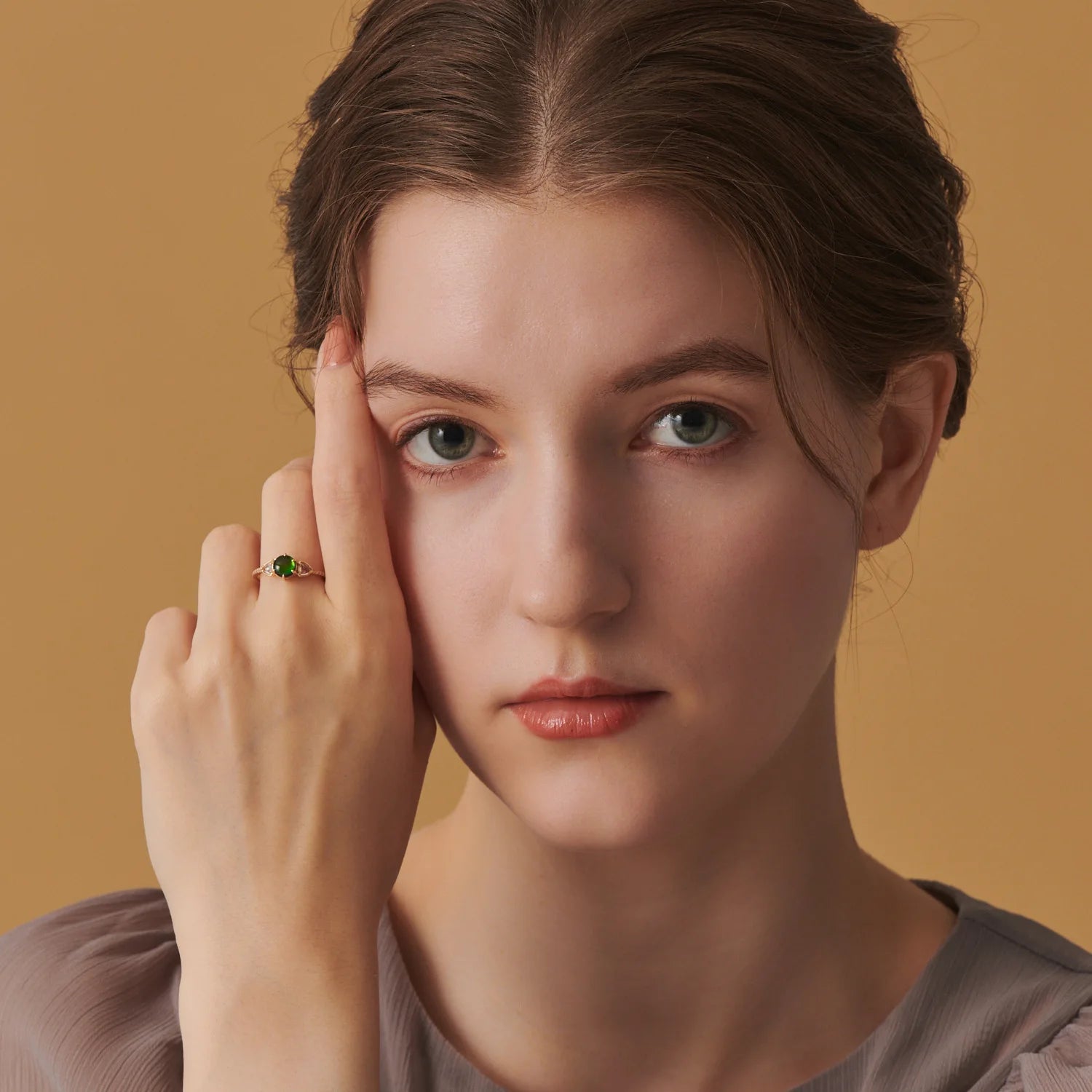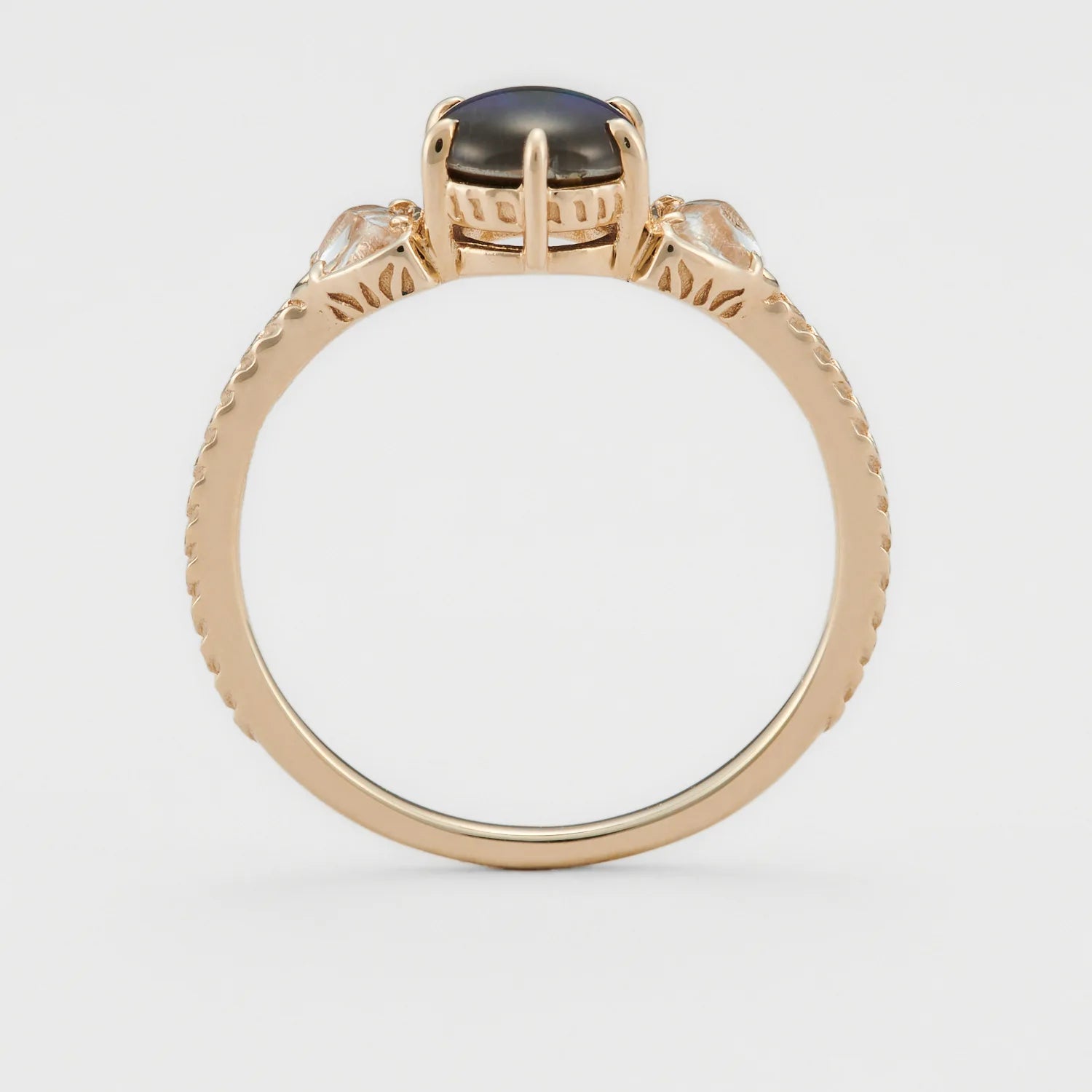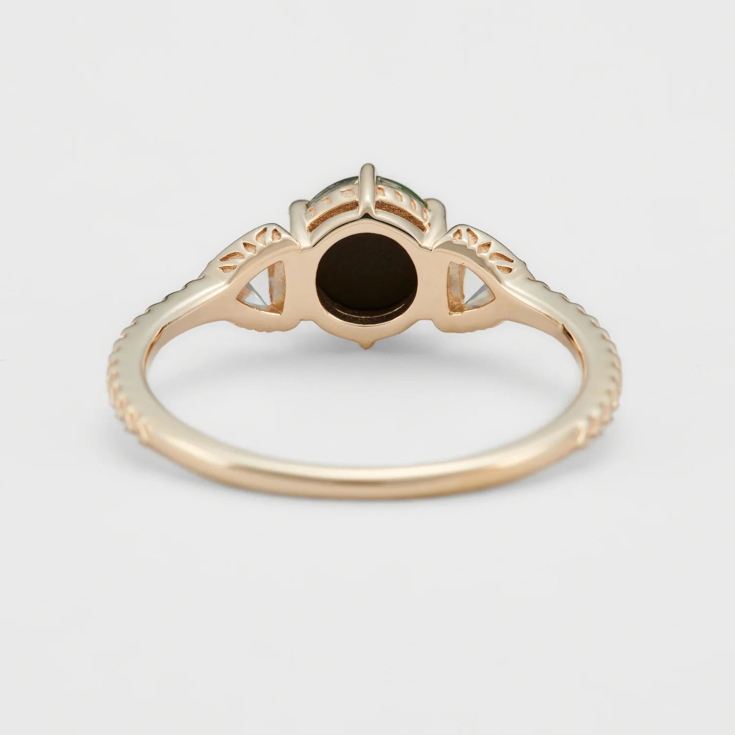 Japanese Minority Vintage Jewelry White Crystal+Ammolite RingS925Silver Plating14KGold