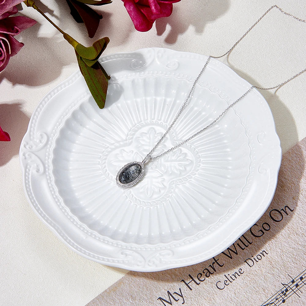Jewelry 925 Sterling Silver 14K Gold Plated Gemstone Series Retro Transparent Black Hair Rutilated Quartz Shaped Necklace
