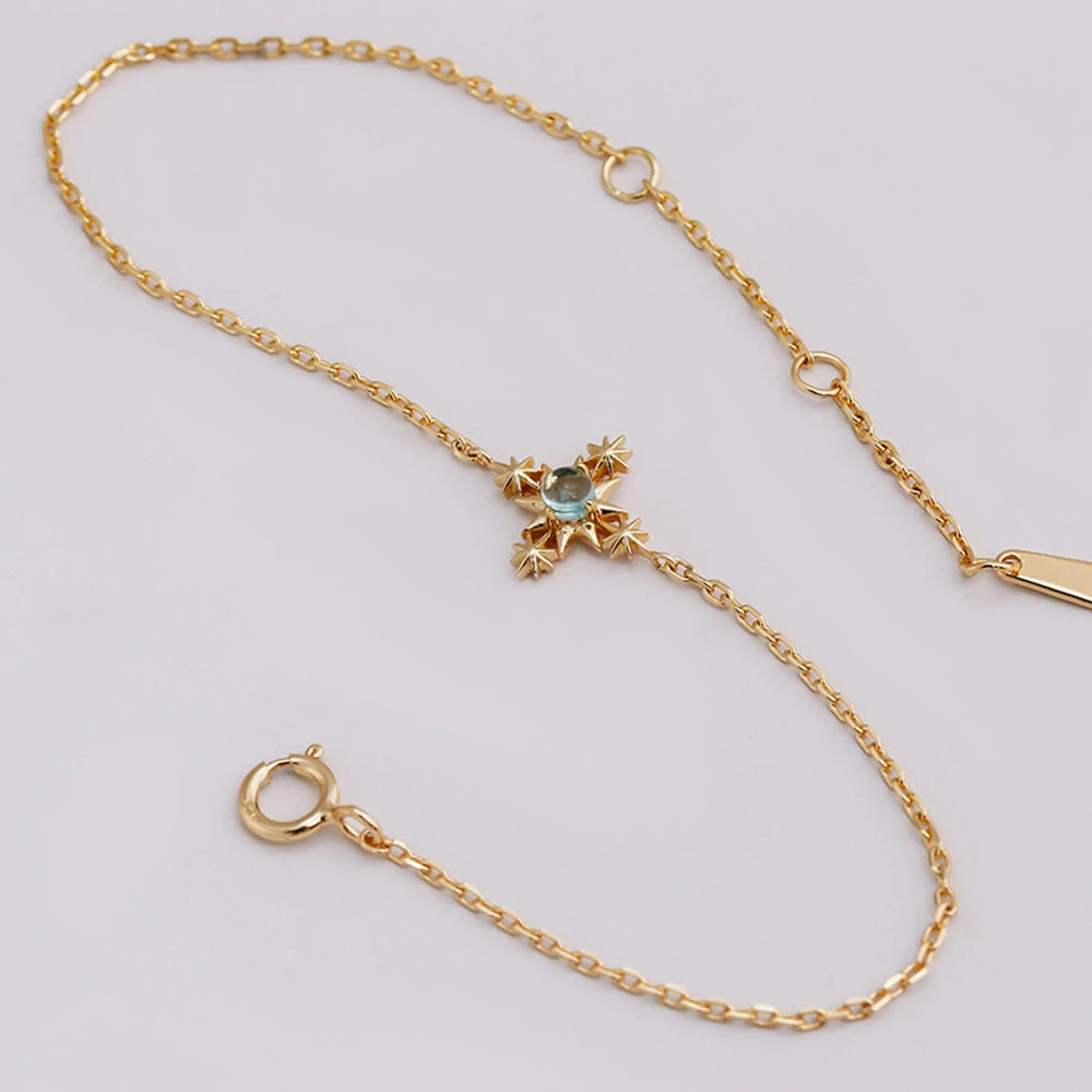 Joyeria En Plata Ley 925 Sterling Silver 14K Gold Plated Gem Stone Gemstone Retro Geometric Circle Round Star Apatite Bracelet