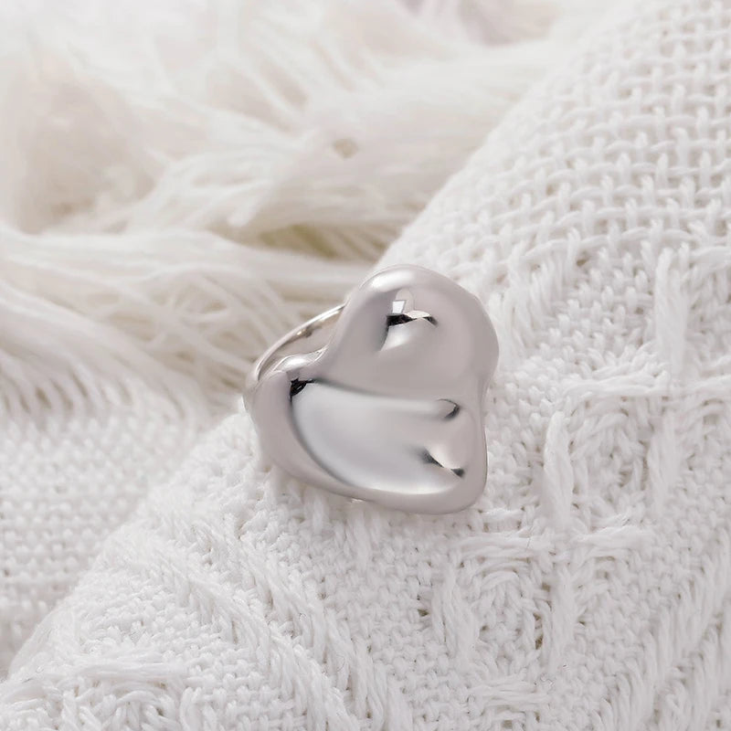 Metal Mirror Heart-shaped Ring Personalized Exaggerated Female Ring White Gold 925 Silver Women's Engagement Rings for Women