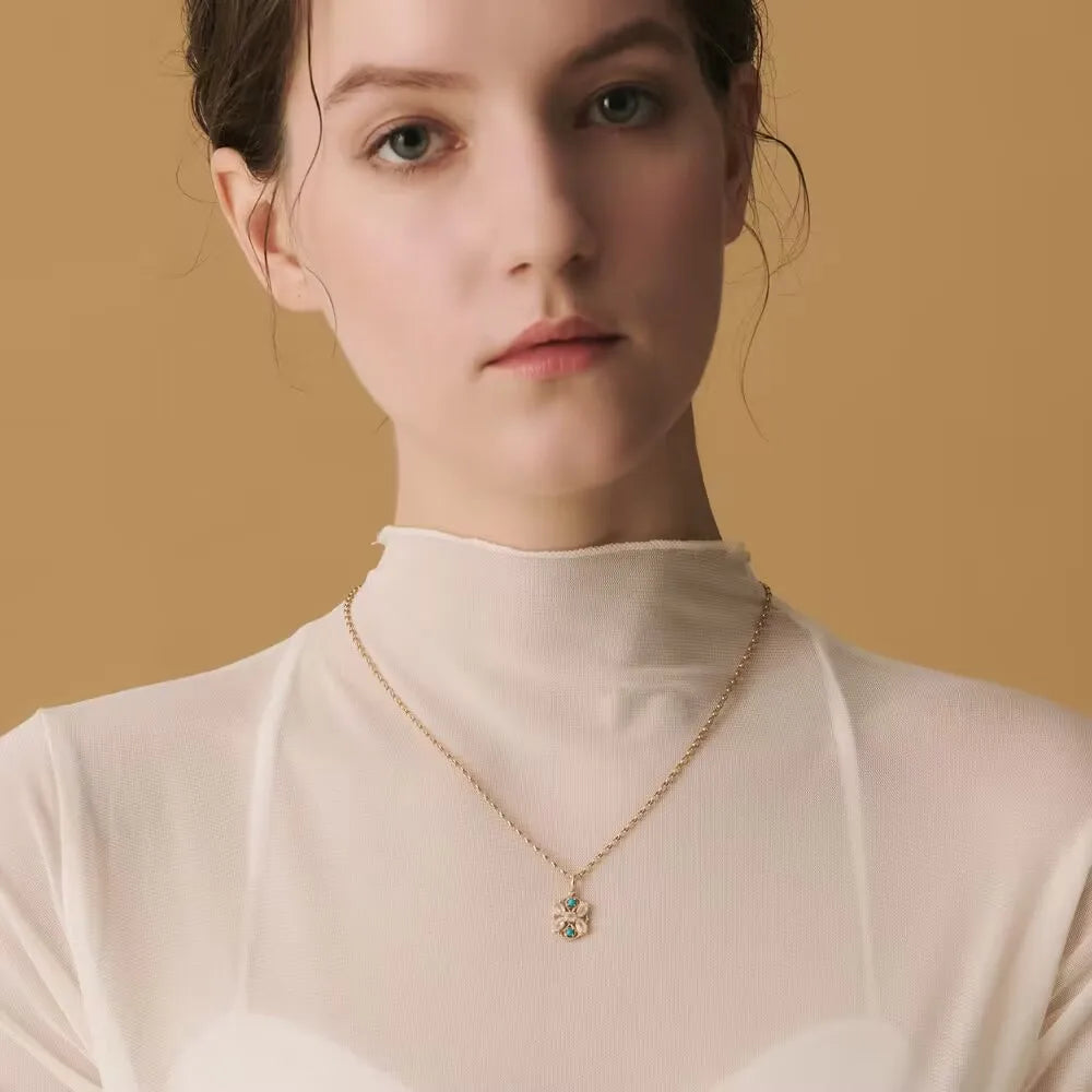 Niche Retro Hollow Design Opal+TurquoiseS925Silver Gold-plated Pendant