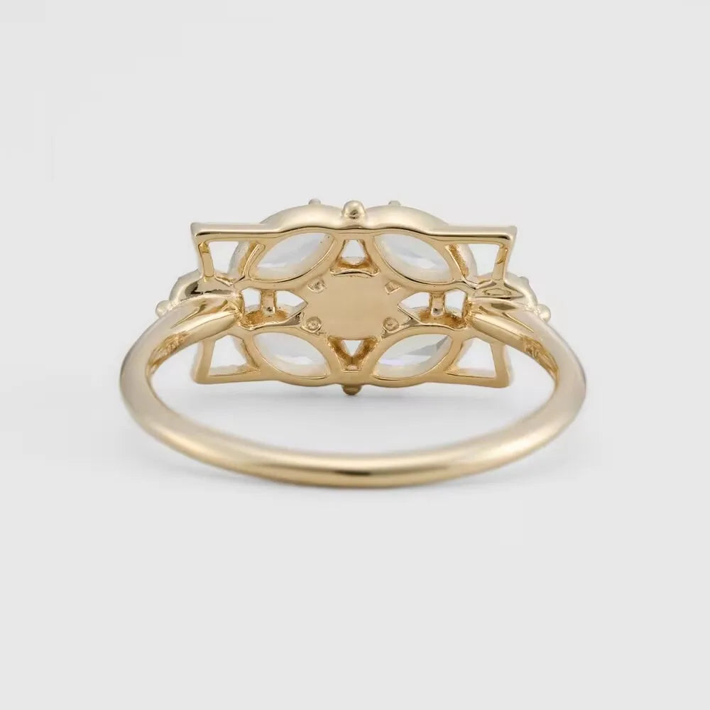 Niche Retro Hollow Geometry Design Inlaid Opal+Turquoise RingS925Silver Plated14KRing