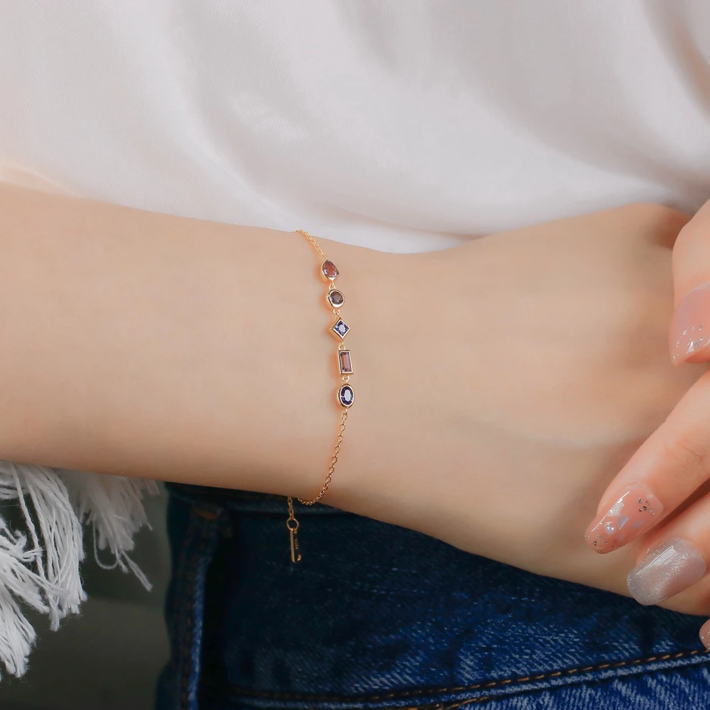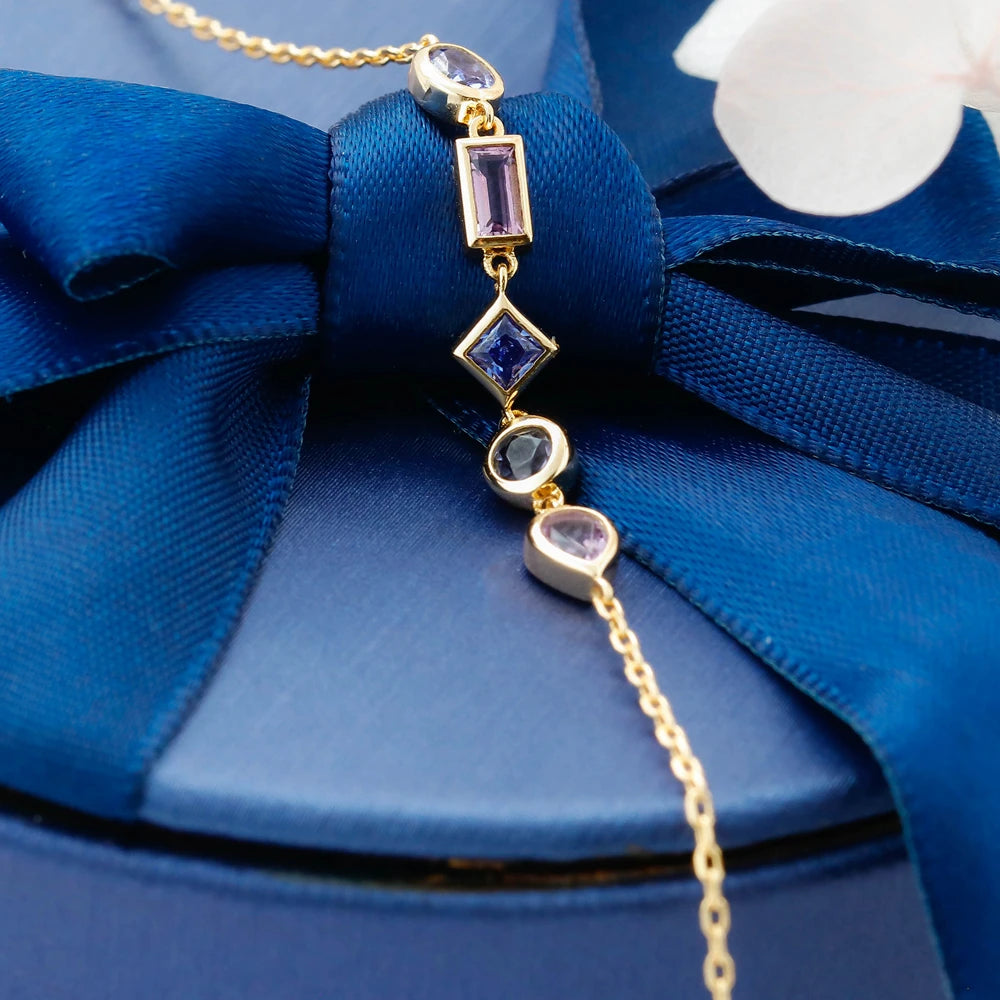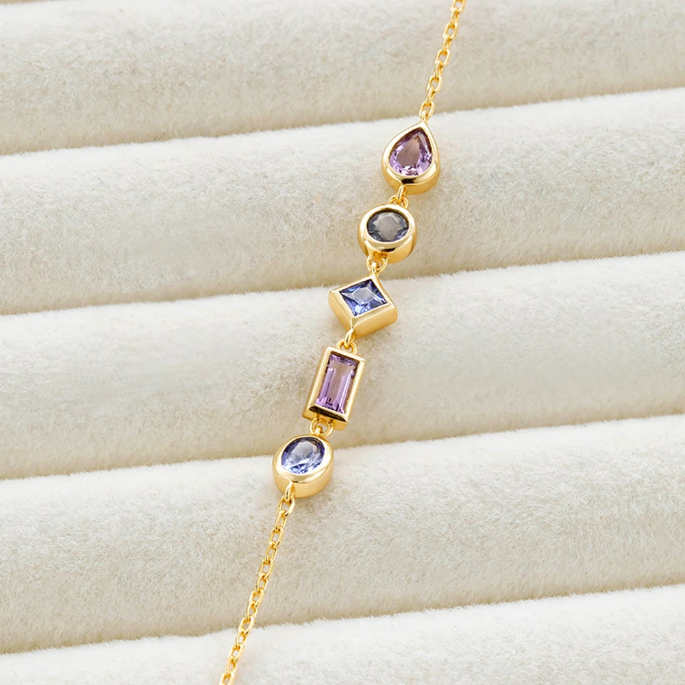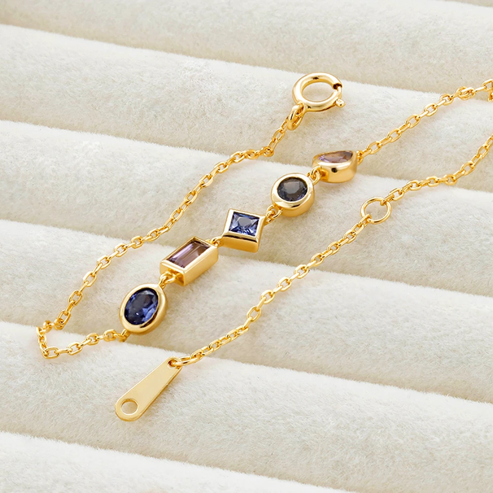 Piedra Pulseras Piedras Naturales 925 Sterling Silver 14K Gold Plated Gemstone Geometry Cordierite Amethyst Tanzanite Bracelet Piedra Pulseras Piedras Naturales 925 Sterling Silver 14K Gold Plated Gemstone Geometry Cordierite Amethyst Tanzanite Bracelet
