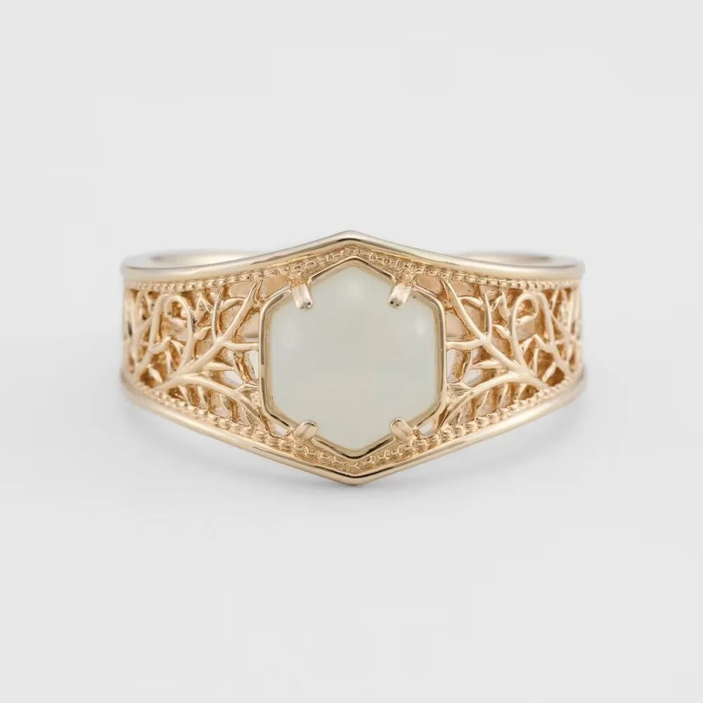Piedras Pata Artesanal Joyeria Por Mayor Retro Hollow Carved RingS925Silver Plating14KKim Hetian Jade Ring