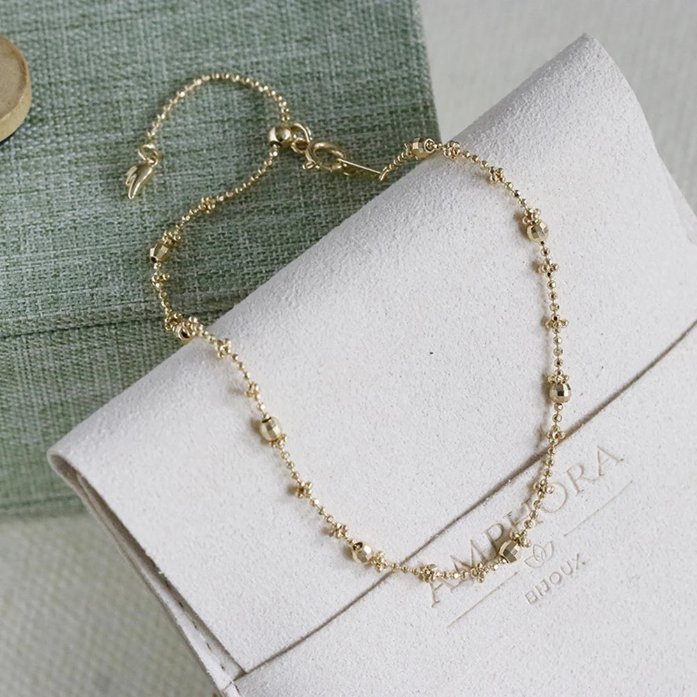 Pulsera De Cristal Factory 925 Sterling Silver 14K Gold Plated Gemstone Fashion Sparkling Geometric Round Bead Bracelet