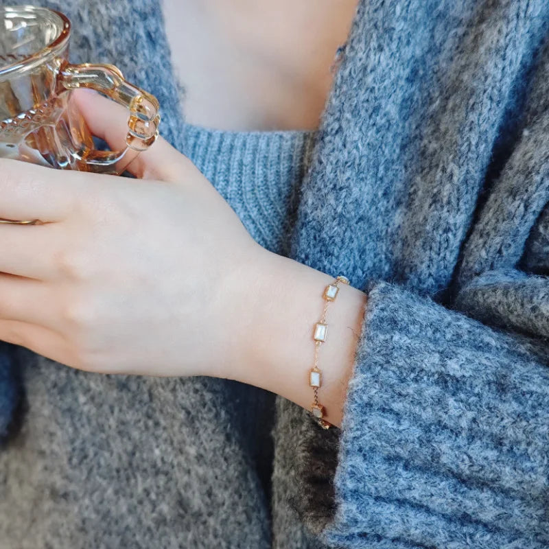 Pulsera De Piedras Preciosas 925 Sterling Silver 14K Gold Plated Gemstone Sample Rectangular Geometry White Shell Bracelet