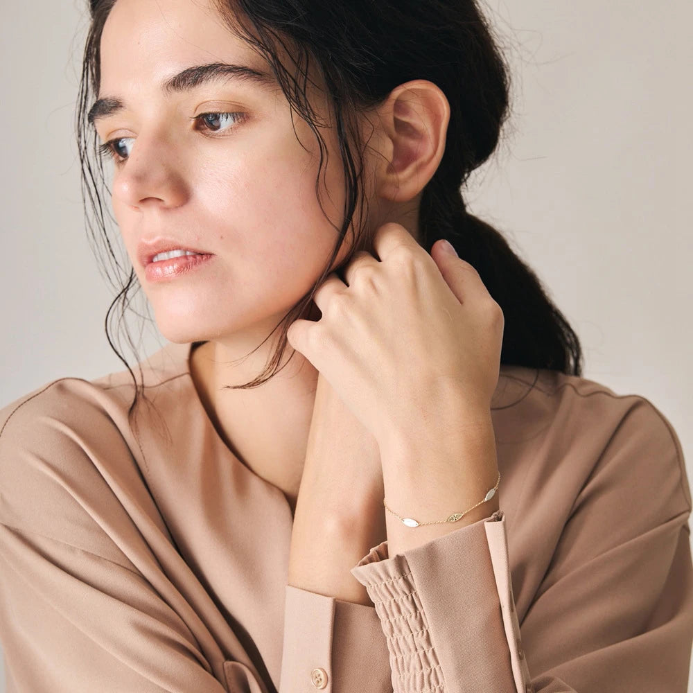 Pulseras Religiosas 925 Sterling Silver 14K Gold Plated Gem Stone Gemstone Carving Two Colour Leaves Adjustable Chain Bracelet
